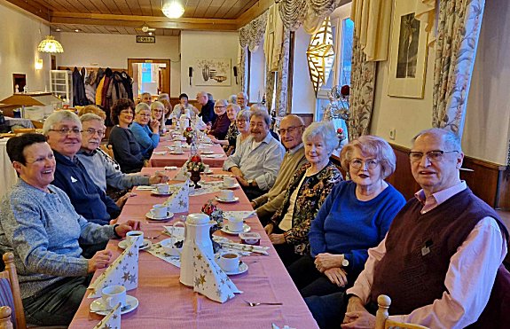 Bei zwar nebligem, aber regenlosem Himmel machten wir uns auf nach Kallstadt i.d. Pfalz. Im vollbesetzen Bus knallten insbesondere auf den hinteren Sitzen schon bald die Korken. So kam man dann gut gelaunt beim Zwischenziel "Kallstadt" an. Nach einer Erkundung des Ortes hieß es dann bald auch: "Kohldampf". Hier konnte das Restaurant "Winzerstuben Weick" helfen. Die vorbestellten Gänsebraten und auch die a` la carte - Gerichte stillten vorzüglich den Hunger.